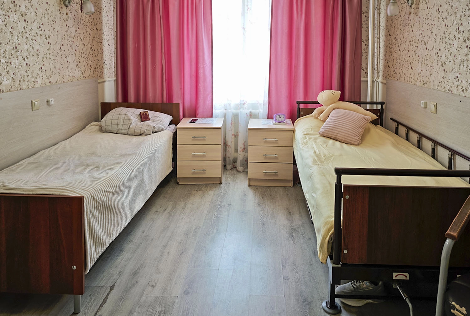 Пансионат для пожилых людей «Химки» вмещает всего 80 жильцов, комнаты рассчитаны на несколько человек. В каждой комнате есть отдельный санузел с безопасным нескользящим покрытием, поручнями, подножками. Территория оборудована таким образом, чтобы по ней беспрепятственно могли перемещаться постояльцы на инвалидных креслах. Комнаты для лежачих больных оборудованы функциональными кроватями.